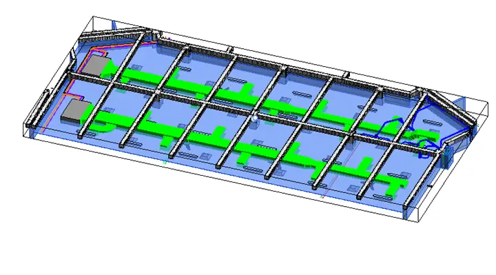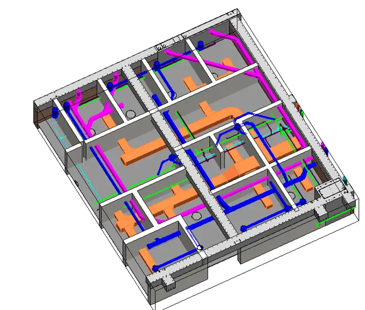 A large-scale institutional project required detailed MEP coordination across multiple buildings. During design validation, several conflicts were identified between duct routing, false ceiling levels, and service clearances.